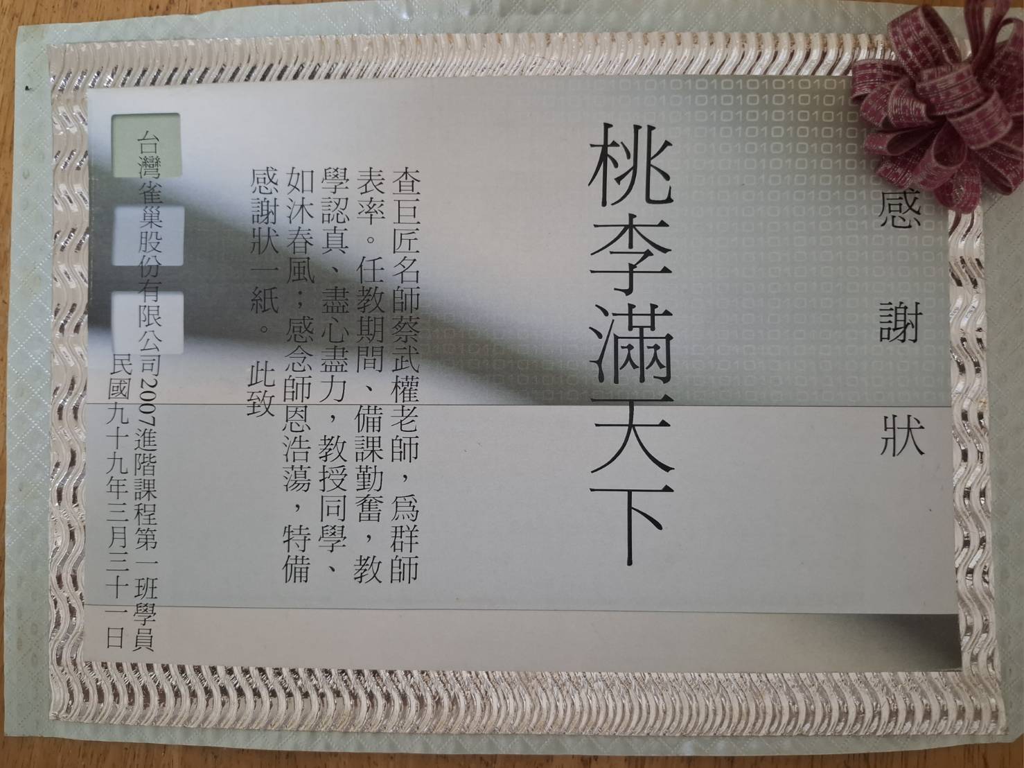 Excel 課後 感謝狀↓